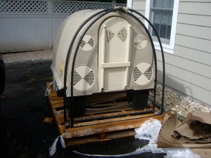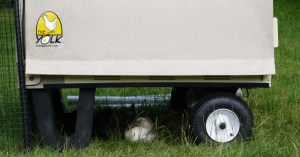 First week of April, 2012. Two weeks until D-Day. Almost didn’t read the latest issue of Backyard Poultry because I didn’t see anything about ducks on the cover. Pressed for time, even pre-duckling, I had a stack of unread magazines but for some reason flipped through this one anyway. Hey, what’s that? A new coop design? I ran to the computer and looked up the website. Hmm, verrrrry interesting. Made for chickens but just get a look at that run. With optional add-on, you get ten feet total plus the coop. Custom-fit canvas awning, marine-quality parts, easy to clean polymer, welded wire cage, made in the US of A? Sold!